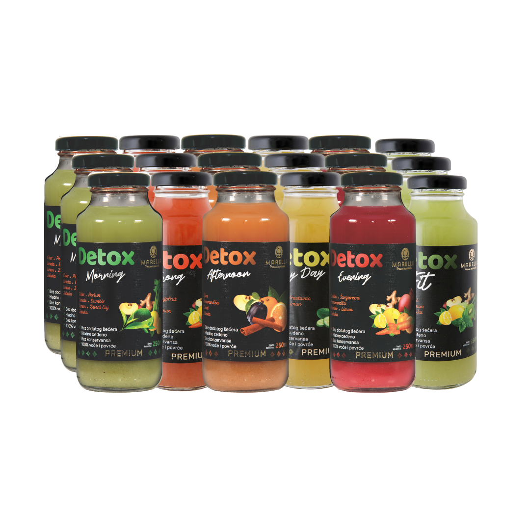 1. The detox package contains 18 detox (250ml per bottle) juices and 6 different types, which are consumed over a period of 3 days