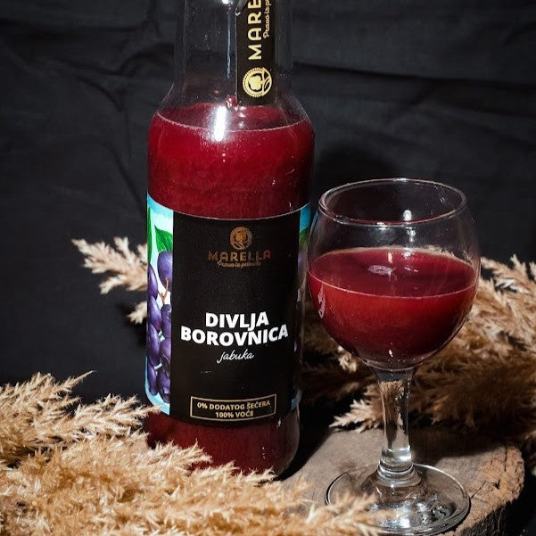 Sastojci: matični voćni sok jabuke, kaša divlje borovnice.