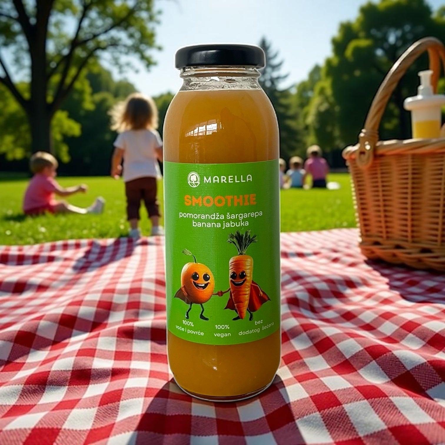 Sastojci: voćni sok od jabuke, kaša od jabuke, kaša od banana, kaša od pomorandži, kaša od šargarepi.